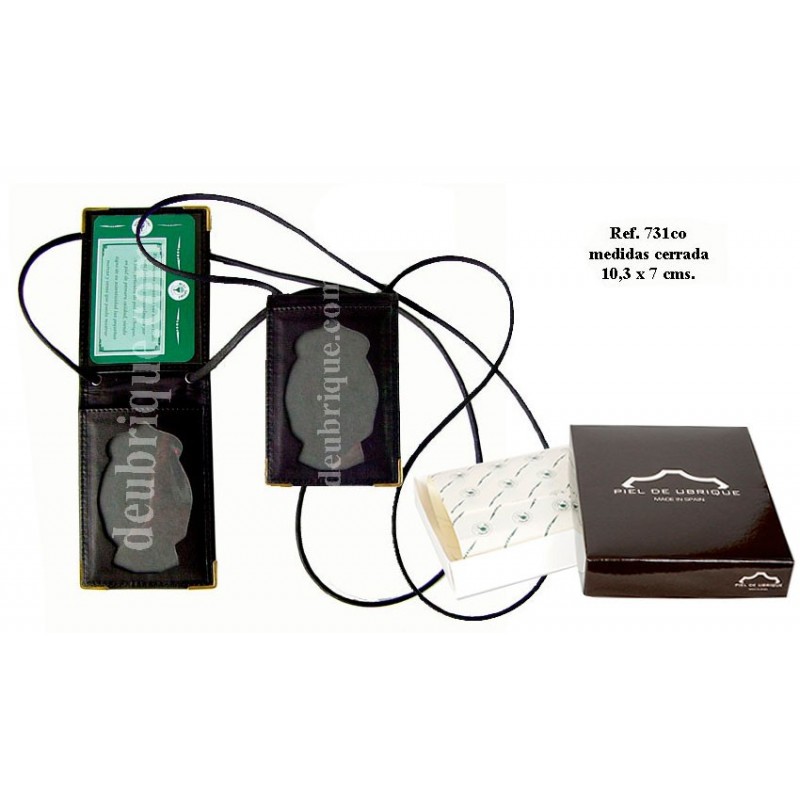 Cartera portaplaca plegable, dispone de cordón para el cuello, las fabricamos para los distintos cuerpos policiales, policia nacional, guardia civil, policia local, ertainza, vigilante, escolta, estan reforzadas en las esquinas con cantoneras.