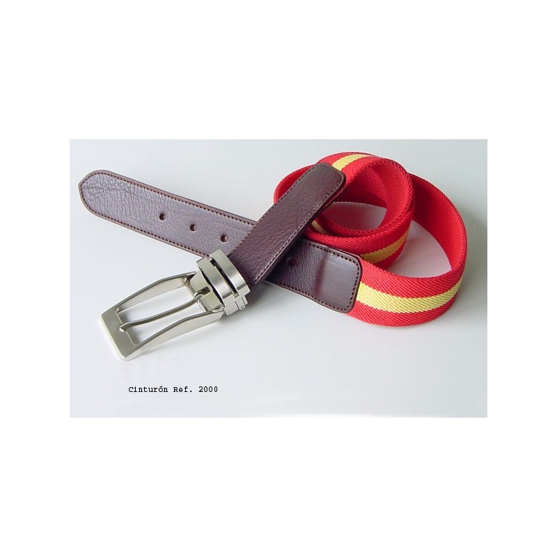 Cinturón bandera España, con terminaciones de piel y hebilla de alta calidad en color niquel, de un ancho de 30 mm.