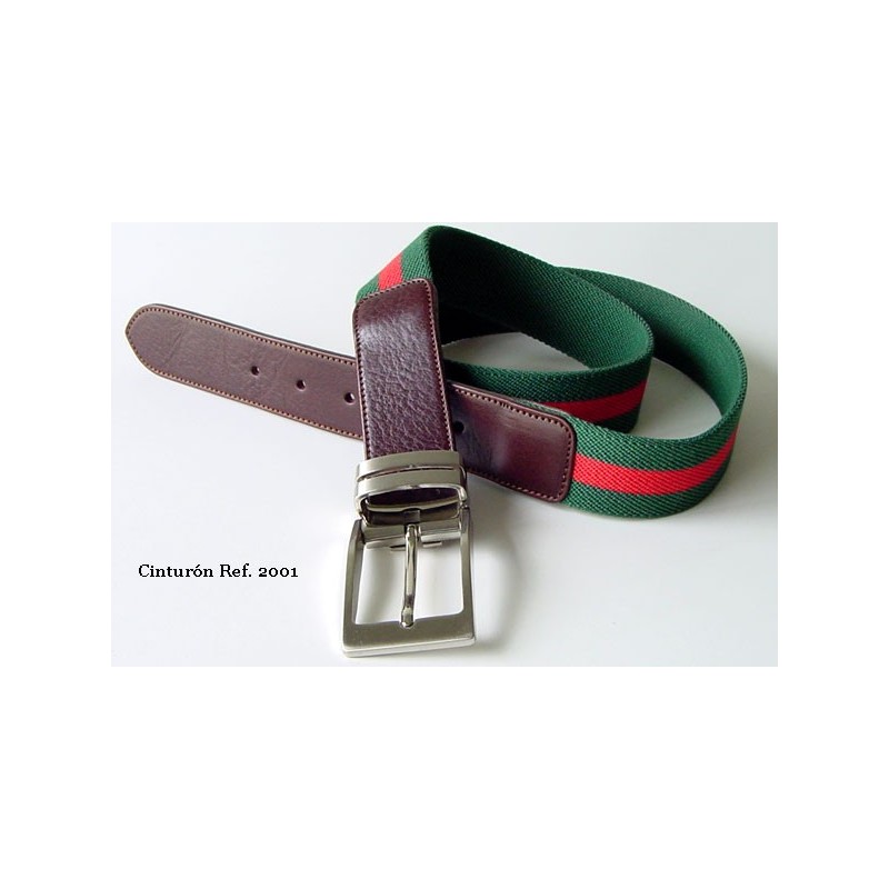 Cinturón bandera, con terminaciones de piel y hebilla de alta calidad en color niquel, de un ancho de 30 mm.